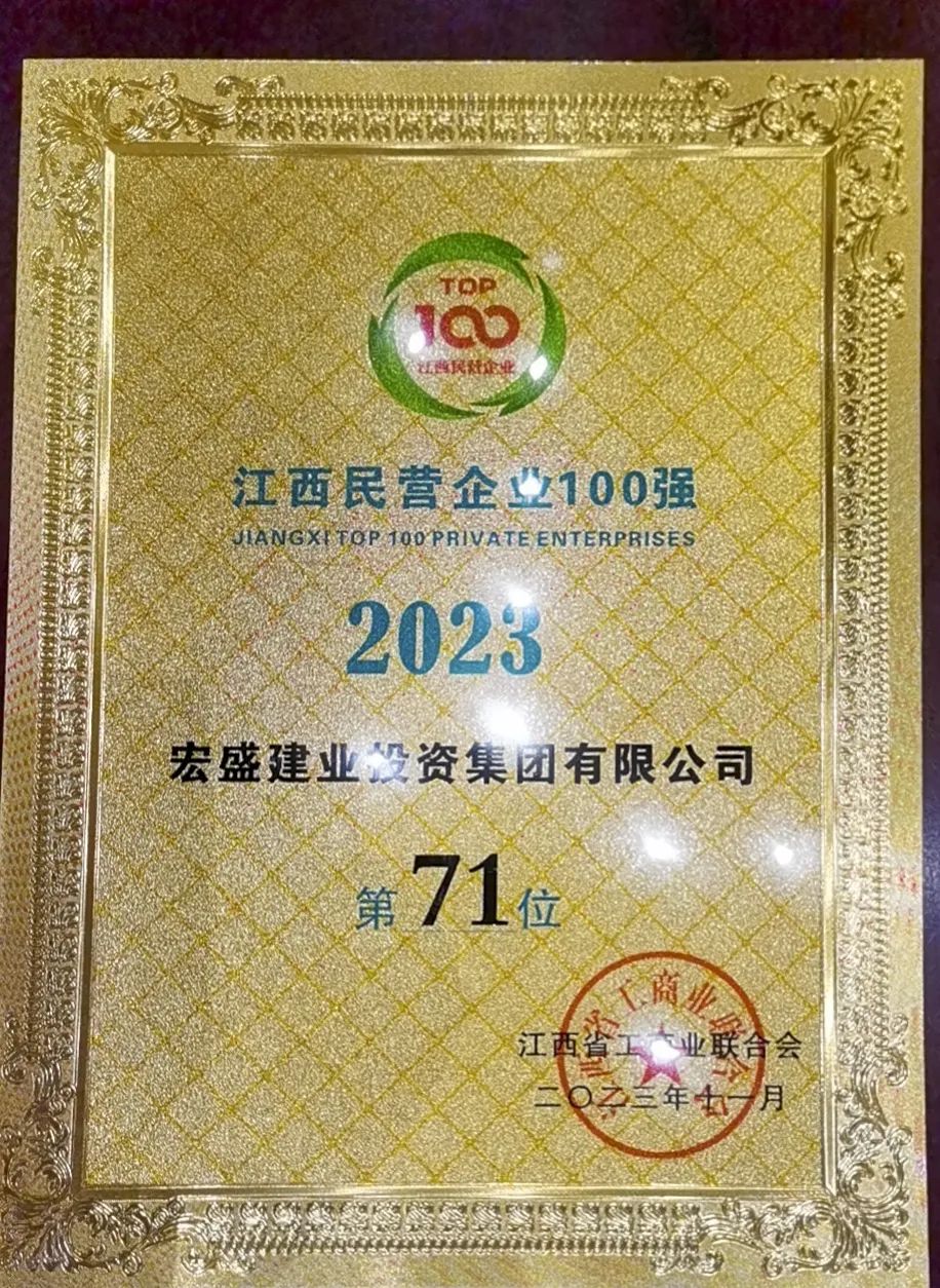 2023年11月3日,江西省人民政府新聞辦公室和江西省工商業(yè)聯(lián)合會主辦“2023江西民營企業(yè)100強發(fā)布會”活動,宏盛建業(yè)集團持續(xù)榮登“江西民營企業(yè)100強”榜單。宏盛建業(yè)集團已連續(xù)多年入圍百強。
