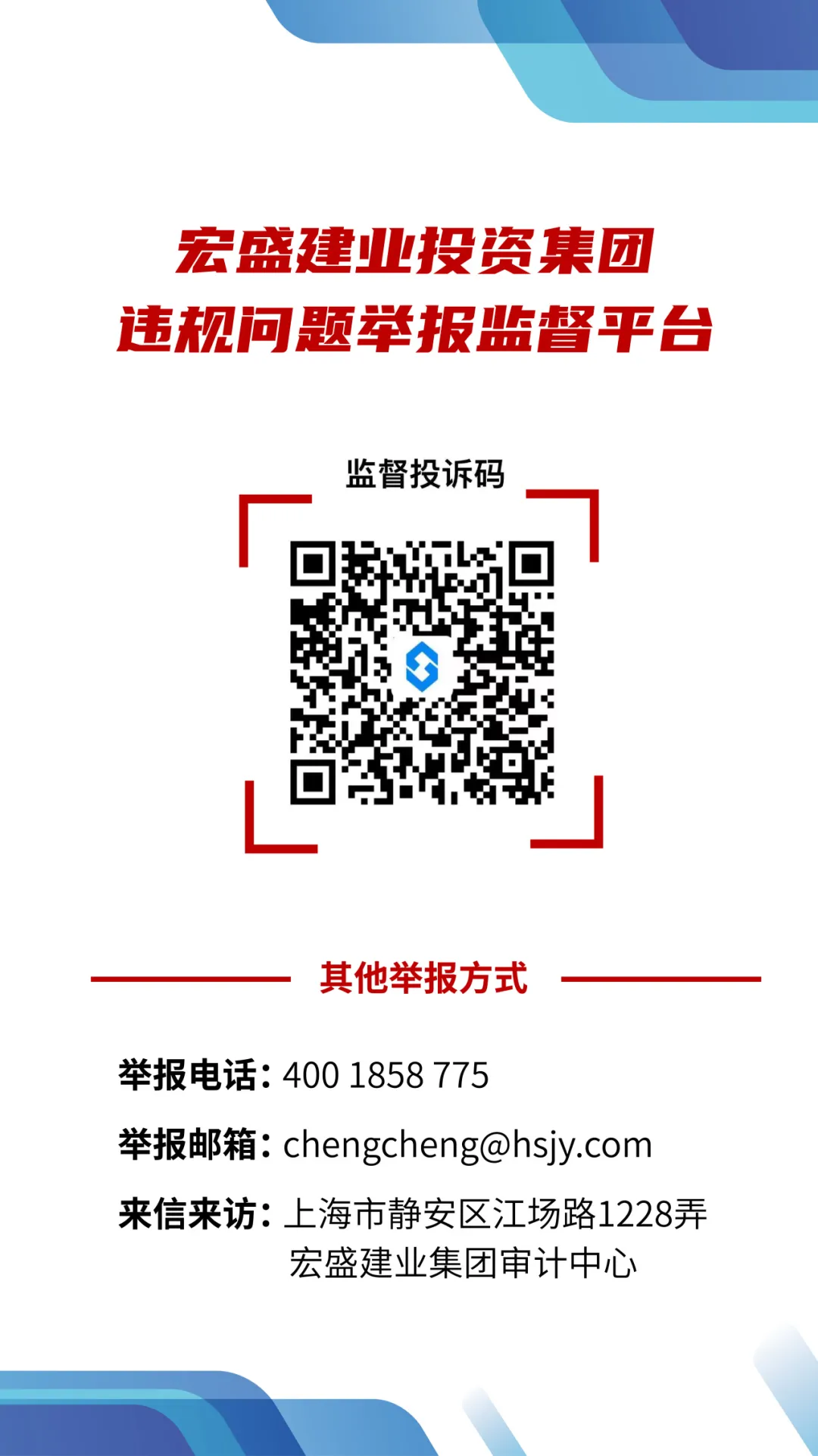 為深入貫徹落實集團廉潔從業(yè)相關(guān)規(guī)定,不斷強化廣大員工廉潔自律意識,切實保障集團業(yè)務(wù)的公正公開和陽光透明,現(xiàn)就制定《廉潔從業(yè)“八項嚴(yán)禁”》、建立“宏盛建業(yè)集團違規(guī)問題舉報監(jiān)督平臺”等有關(guān)內(nèi)容通知如下: