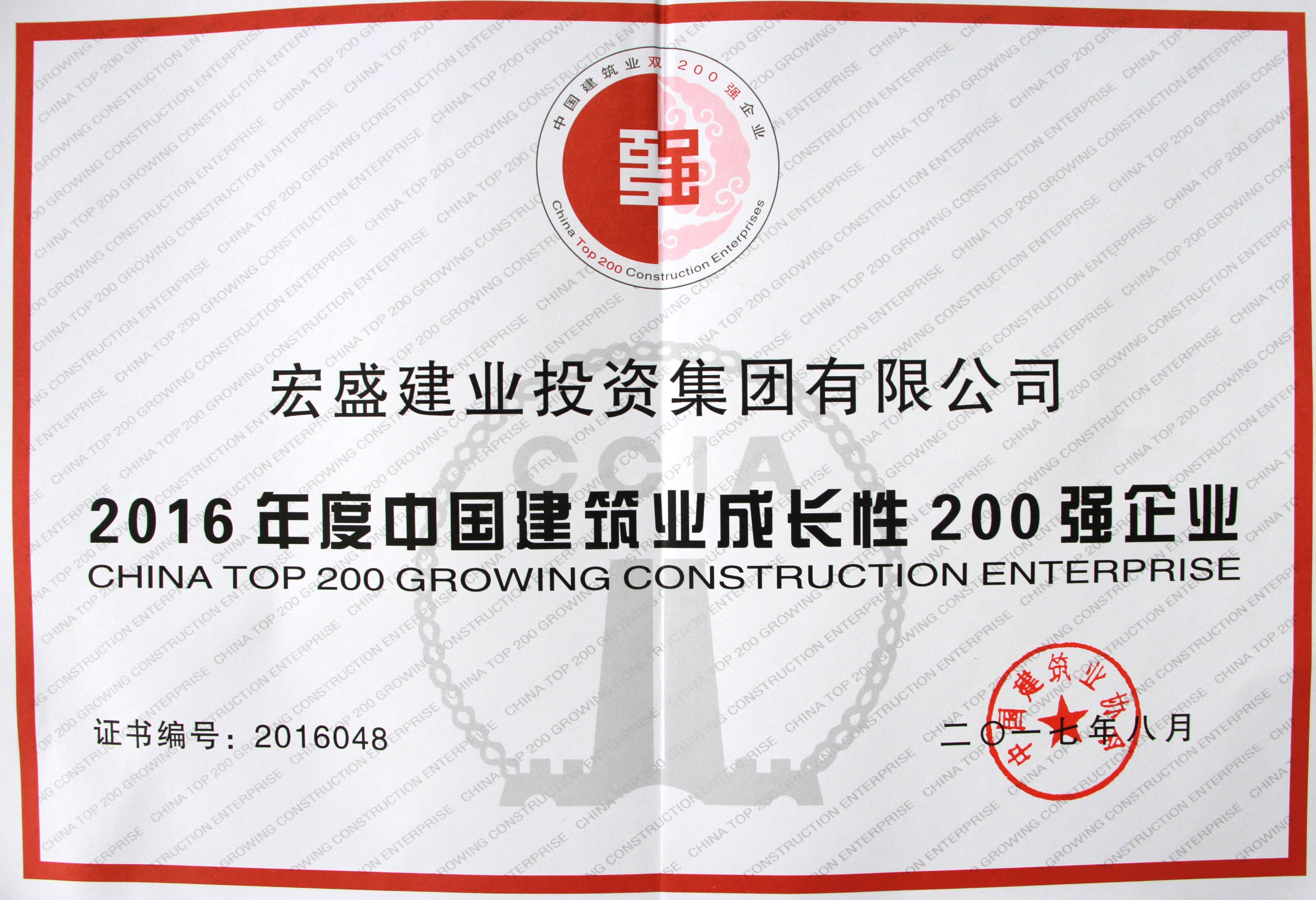 2016年度中國(guó)建筑業(yè)成長(zhǎng)性200強(qiáng)企業(yè)