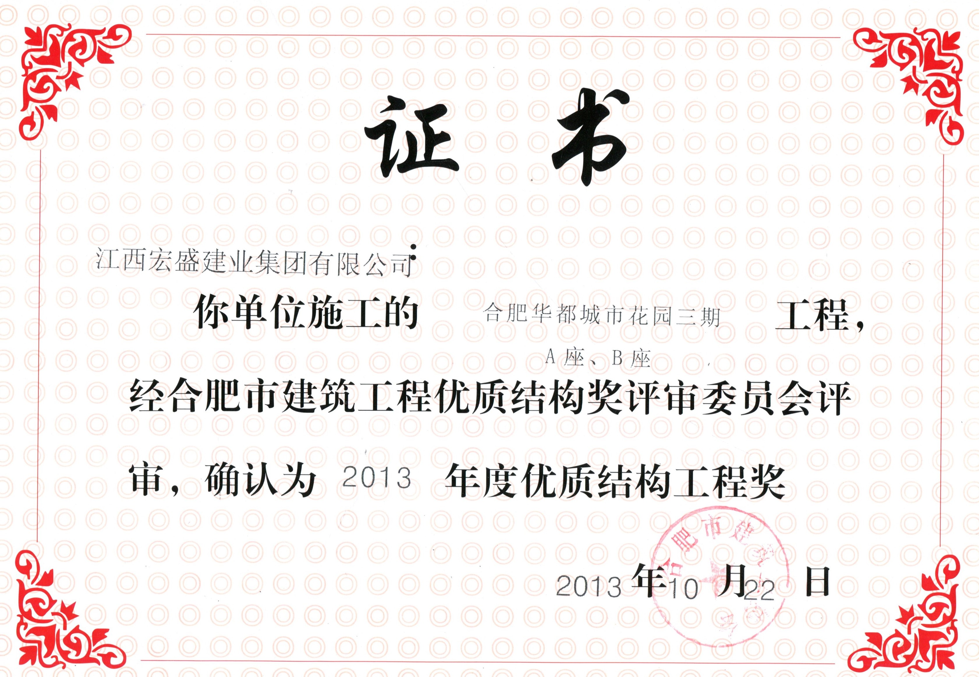 2013年度優(yōu)質(zhì)結(jié)構(gòu)工程獎