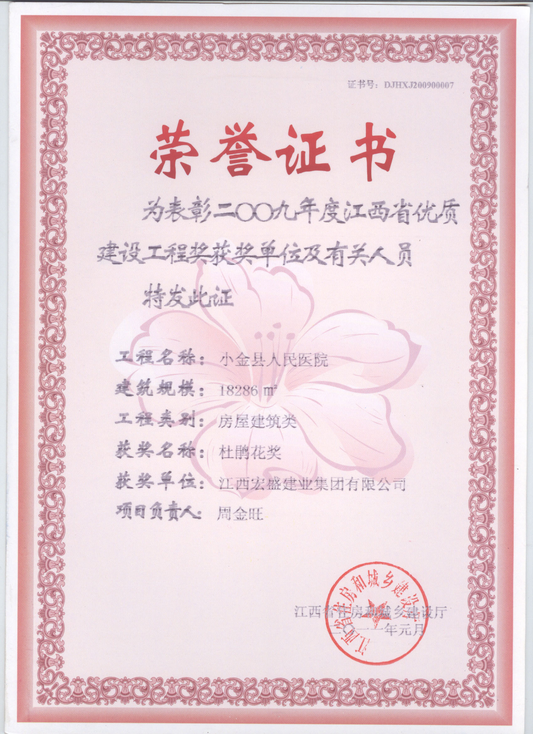 德安縣以峰山公園一期工程 江西省優(yōu)良工程獎