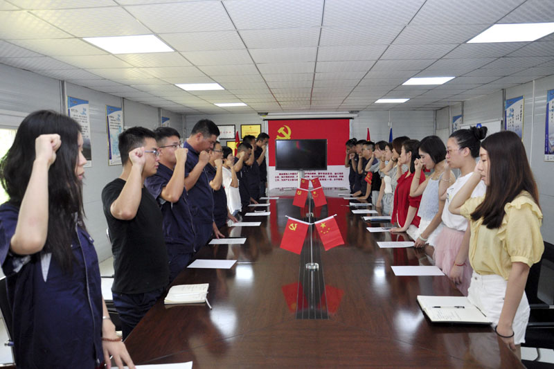 △全體參會(huì)人員在號(hào)長(zhǎng)領(lǐng)誓下重溫入團(tuán)誓詞