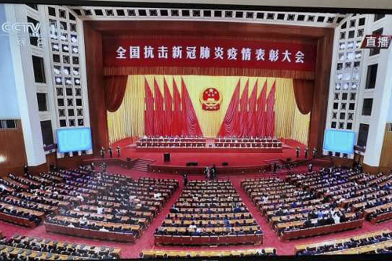 中共中央總書記、國家主席、中央軍委主席習(xí)近平向在抗擊新冠肺炎疫情斗爭中作出杰出貢獻(xiàn)的功勛模范人物頒授勛章獎?wù)虏l(fā)表重要講話?!肮埠蛧鴦渍隆鲍@得者鐘南山、“人民英雄”國家榮譽(yù)稱號獲得者張伯禮、張定宇、陳薇四人在列。大會還對全國抗擊新冠肺炎疫情先進(jìn)個人、先進(jìn)集體、全國優(yōu)秀共產(chǎn)黨員、全國先進(jìn)基層黨組織進(jìn)行表彰。