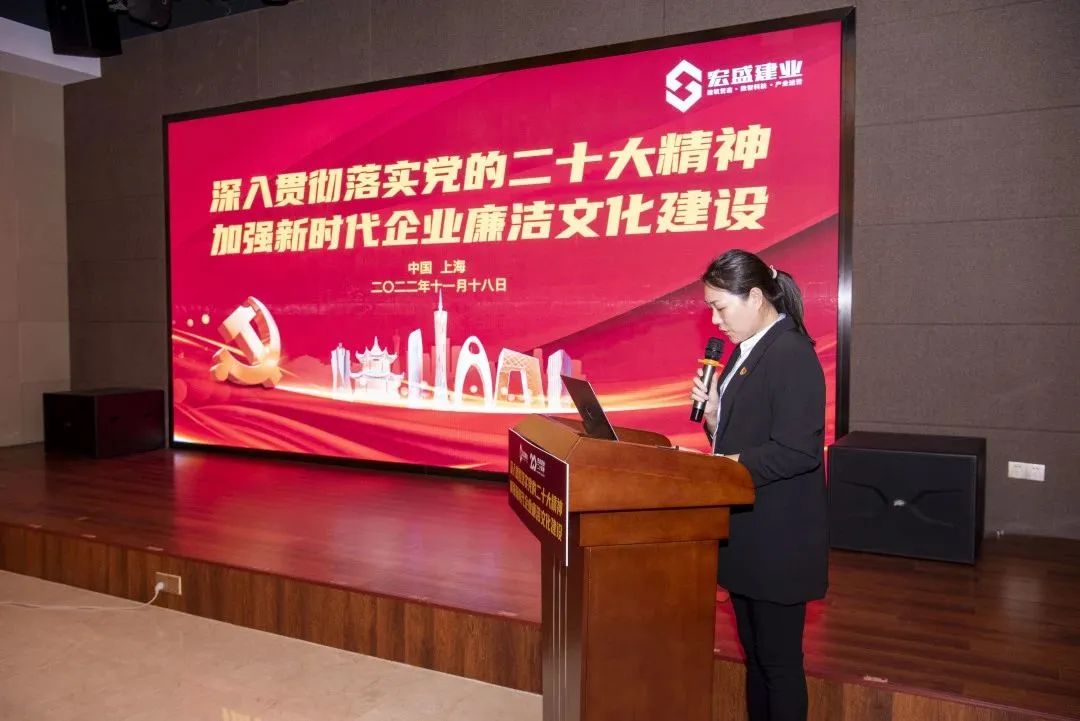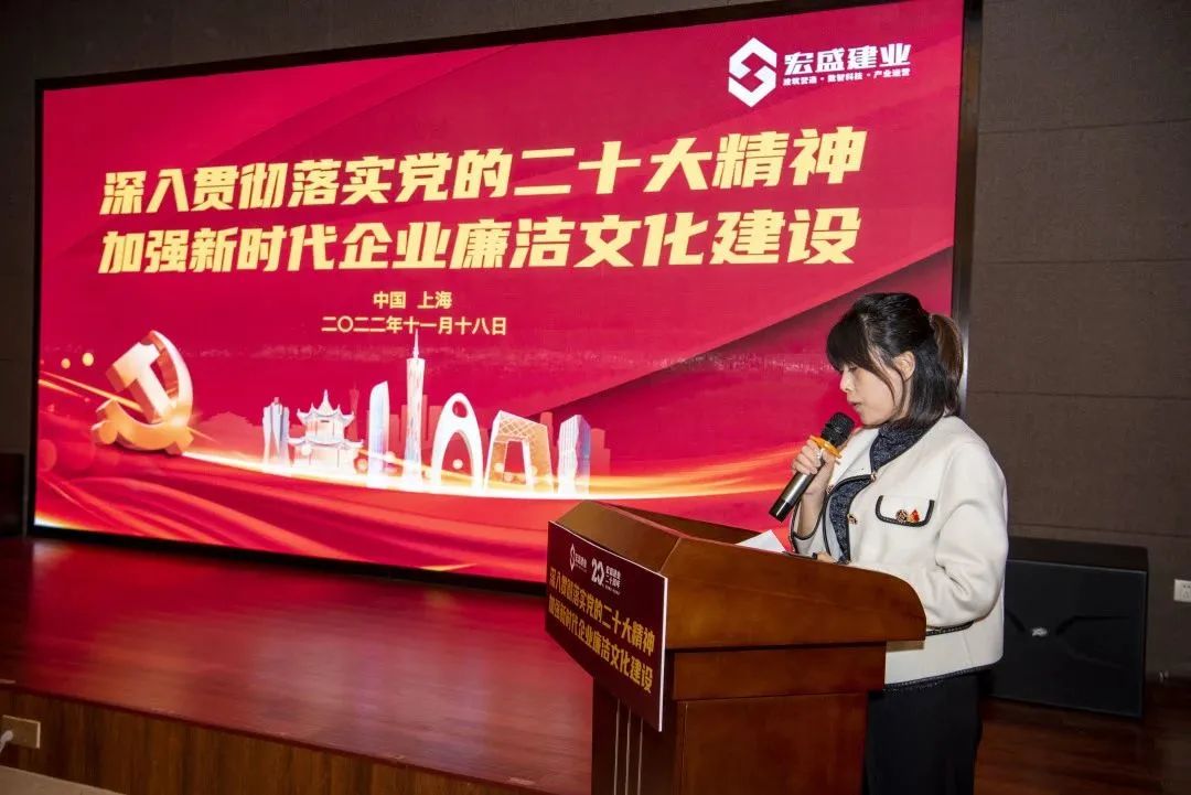 集團(tuán)黨支部副書記金慧向全員宣貫黨的二十大精神。
