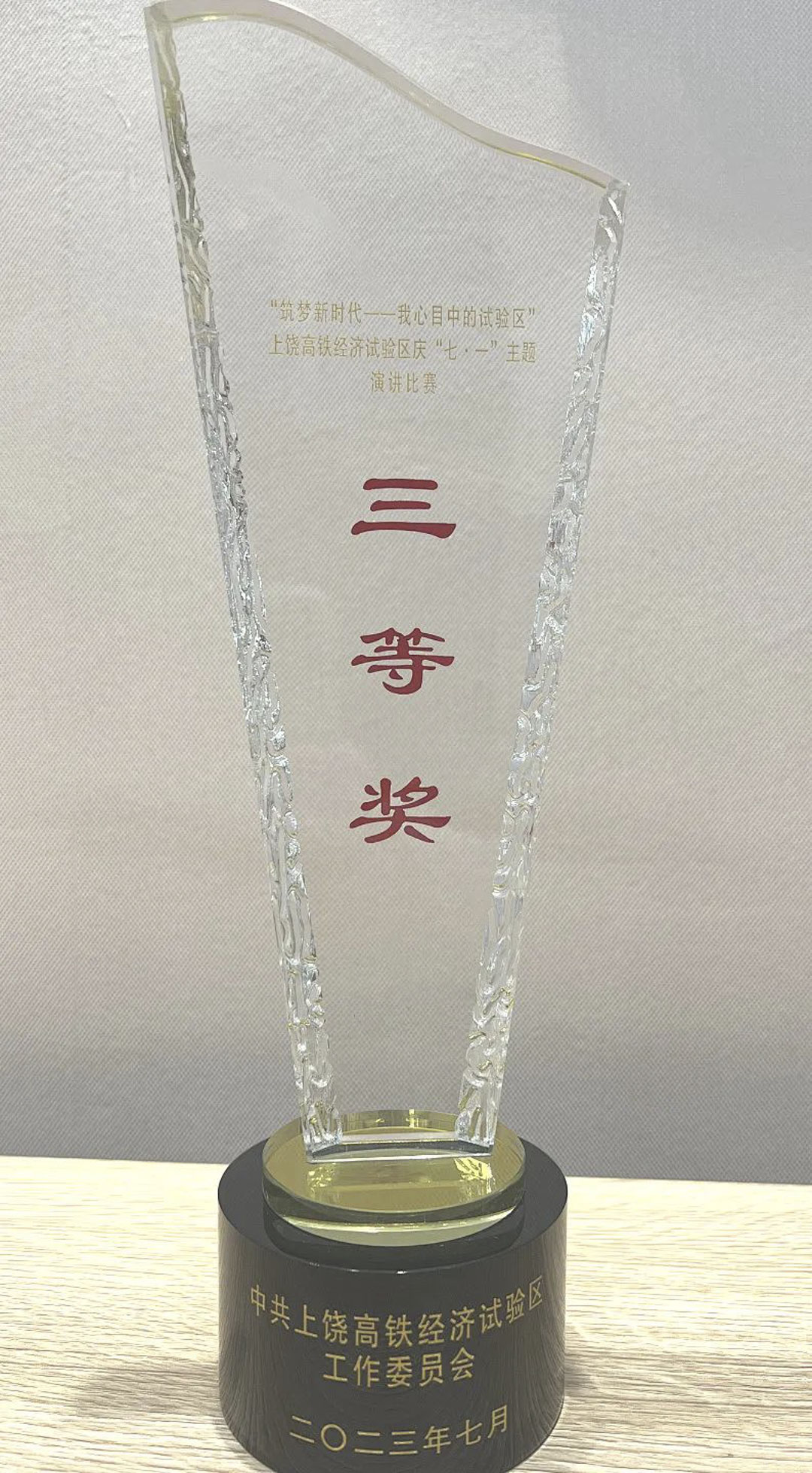 上饒市建筑科技產(chǎn)業(yè)園黨支部代表鄭翼同志,在上饒高鐵經(jīng)濟(jì)試驗(yàn)區(qū)組織的“筑夢(mèng)新時(shí)代——我心目中的試驗(yàn)區(qū)”主題演講比賽中榮獲三等獎(jiǎng)。