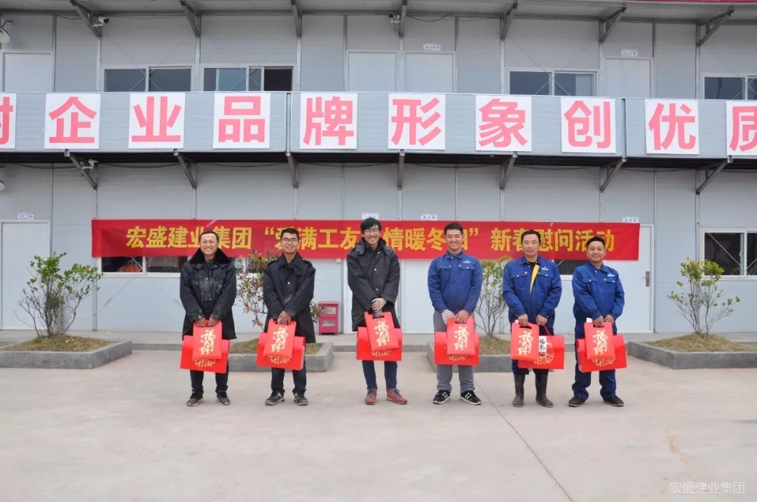 “工友們辛苦了,我代表集團(tuán)周金虎董事長、代表工會來看望慰問大家,給大家拜年了!”2月9日上午,受集團(tuán)周金虎董事長委托,集團(tuán)黨支部書記、工會主席葉文玉帶領(lǐng)有關(guān)人員來到萬年縣六O小學(xué)總部、橫峰縣便民服務(wù)大樓項目工程工地,開展“愛滿工友,情暖冬陽”新春慰問活動,向奮戰(zhàn)在施工一線的項目部全體管理人員,送上集團(tuán)領(lǐng)導(dǎo)和總部機(jī)關(guān)親切關(guān)懷和新春祝福!
