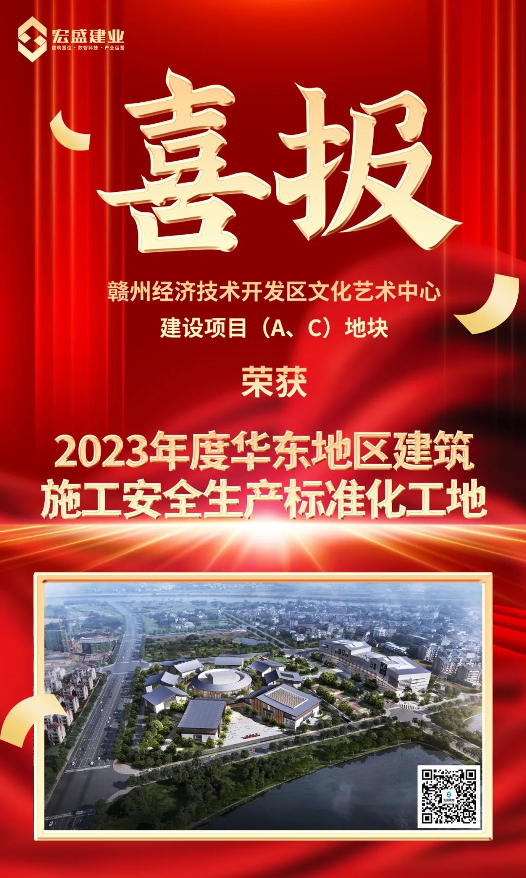 近日,山東省建筑安全與設(shè)備管理協(xié)會公示了關(guān)于2023 年度華東地區(qū)建筑施工安全生產(chǎn)標(biāo)準(zhǔn)化工地的名單,由我司宏盛建業(yè)投資集團承建的“贛州經(jīng)濟技術(shù)開發(fā)區(qū)文化藝術(shù)中心建設(shè)項目(A、C)地塊”被評為“2023年度華東地區(qū)建筑施工安全生產(chǎn)標(biāo)準(zhǔn)化工地”。