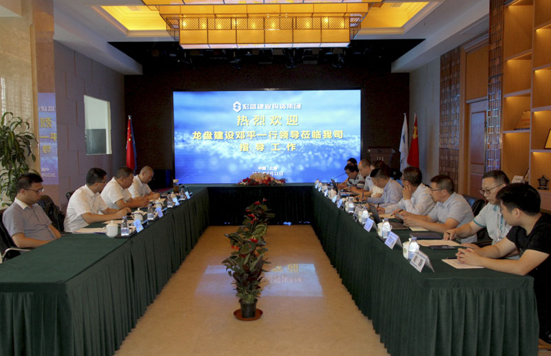 8月11日,龍盤集團董事長鄧平一行到集團考察交流,集團董事長周金虎陪同座談,雙方就加強合作往來達成一致意見。