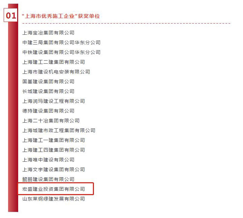 近日,從2020第五屆(中國.上海)建筑行業(yè)供需對接交流會上發(fā)來喜訊,宏盛建業(yè)獲評2020-2021年度“上海地區(qū)優(yōu)秀施工企業(yè)”。