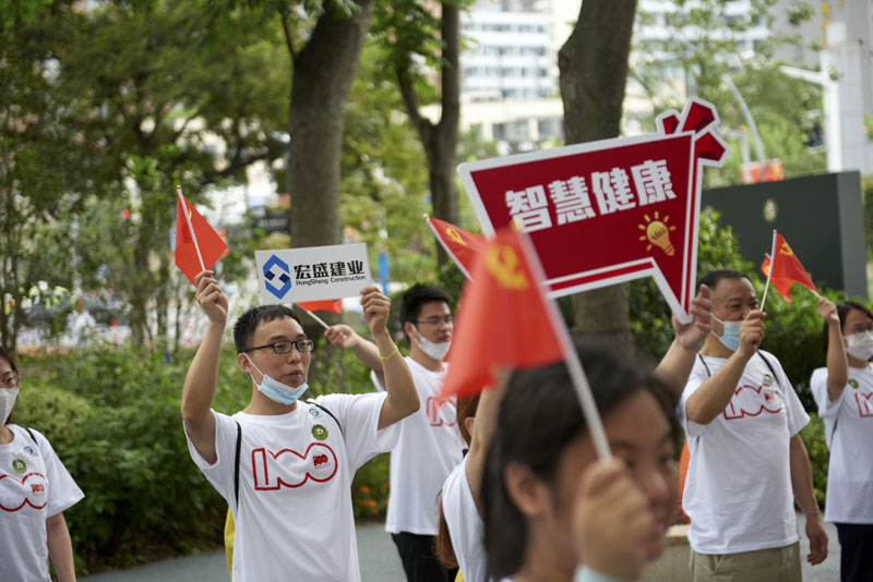 6月28日,為慶祝中國共產(chǎn)黨成立100周年,由上海市靜安區(qū)大寧路街道組織的“健康寧街區(qū) 企動新征程”紅色主題定向打卡賽順利舉行。賽程設(shè)置了6個打卡點(diǎn),每個點(diǎn)位分別將黨史知識、黨史人物、紅色歌曲等內(nèi)容融入到趣味游戲中,寓教于樂,讓黨史學(xué)習(xí)教育更加深入人心。宏盛建業(yè)投資集團(tuán)作為轄區(qū)的企業(yè)單位,有幸派出代表參加了此次別開生面的活動。